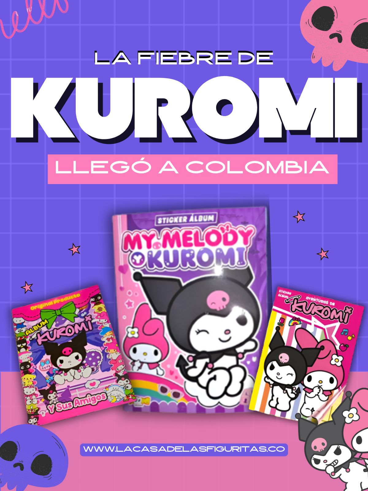 La colección del momento. Regala a tu niña el nuevo álbum My Melody Kuromi junto al set completo de todas las laminitas listas para pegar ¡Album completo! El album que esta de moda y esta rompiendo records de ventas